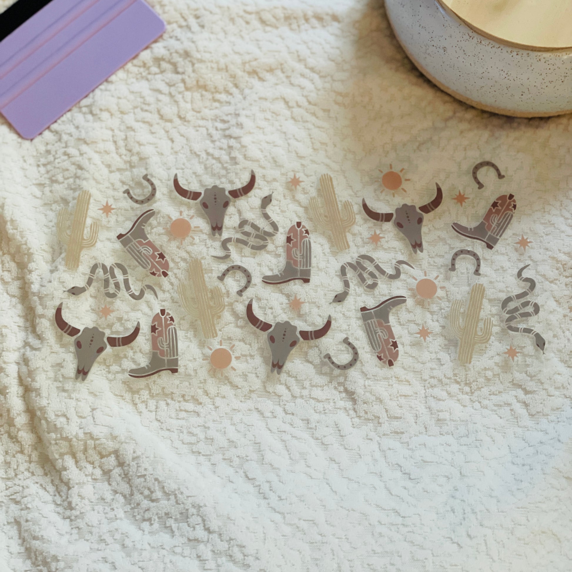 2. Place the transfer on the cup ensuring design is straight and positioned correctly.