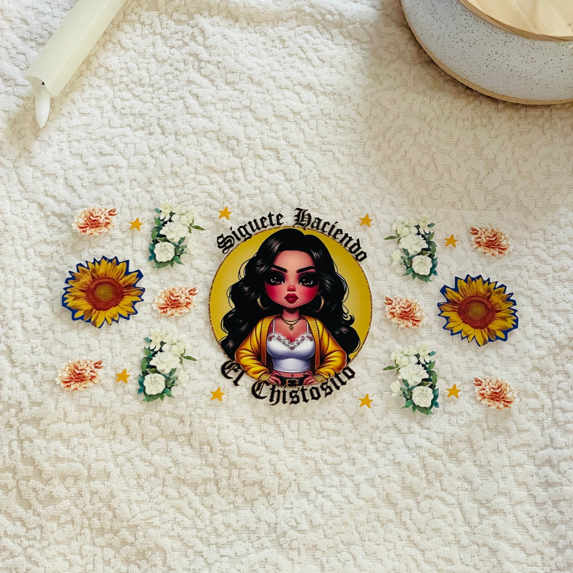 2. Place the transfer on the cup ensuring design is straight and positioned correctly.