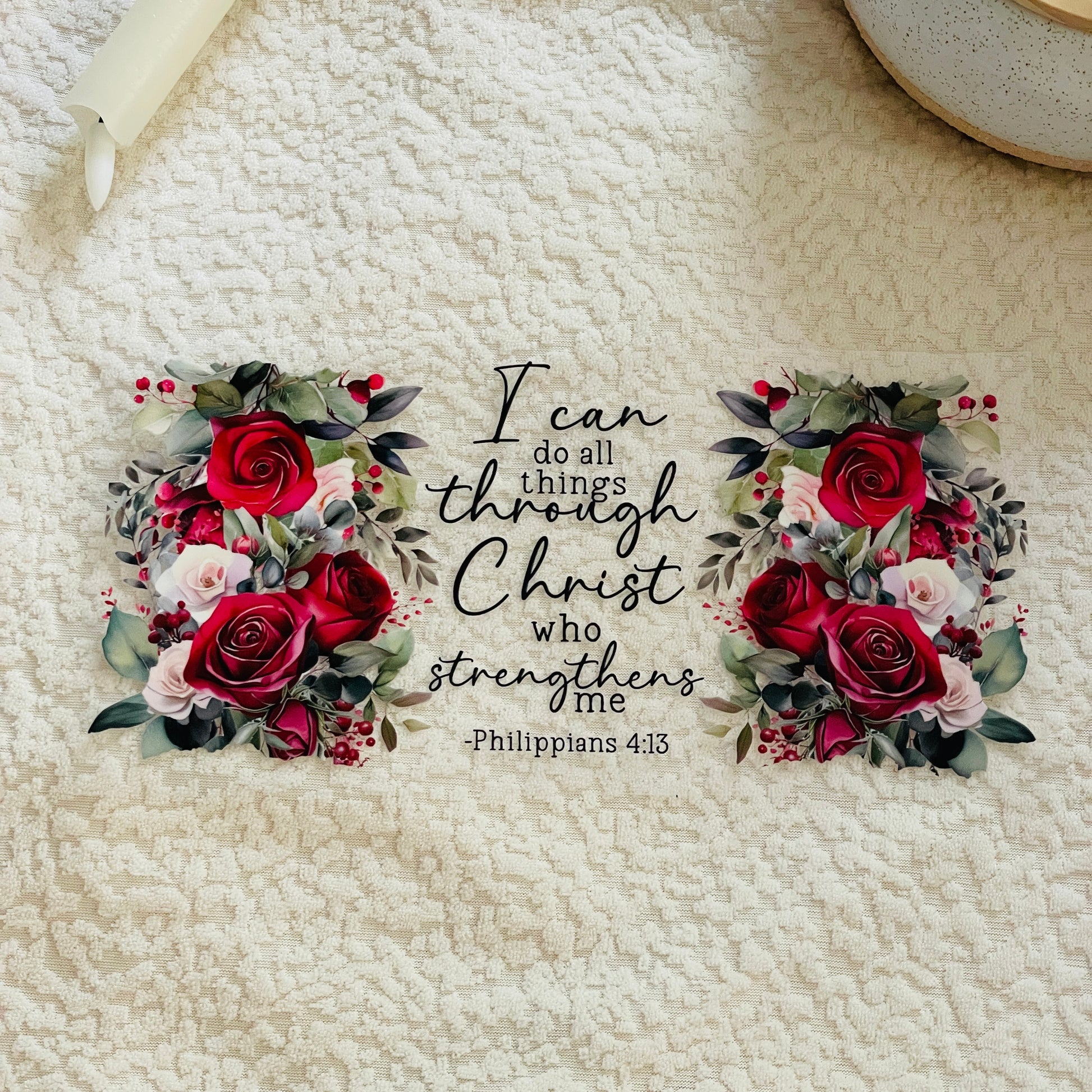 2. Place the transfer on the cup ensuring design is straight and positioned correctly.