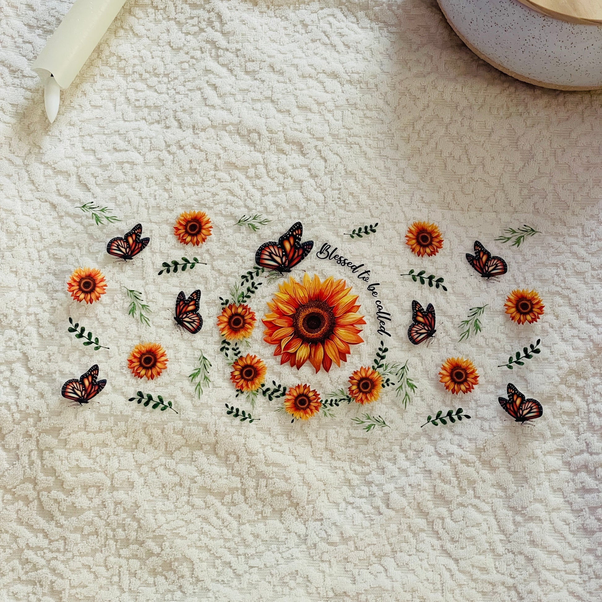 2. Place the transfer on the cup ensuring design is straight and positioned correctly.