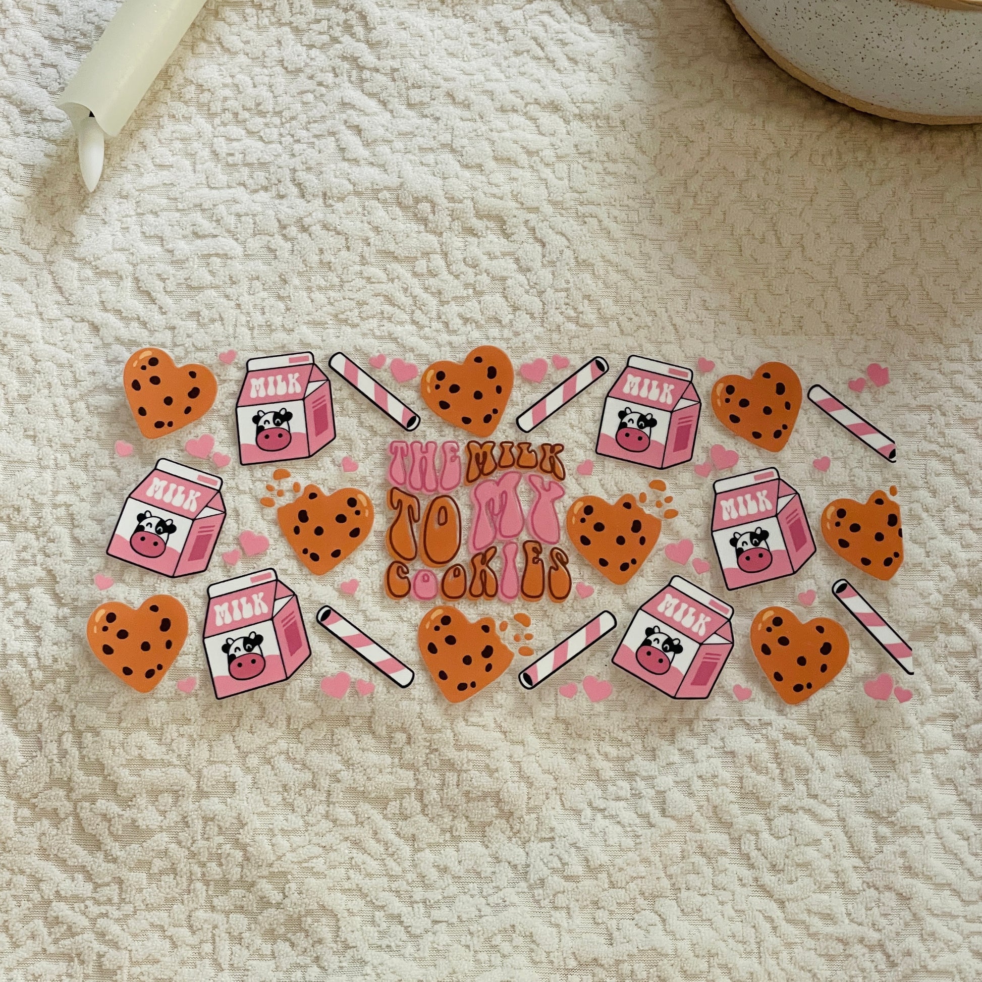 2. Place the transfer on the cup ensuring design is straight and positioned correctly.