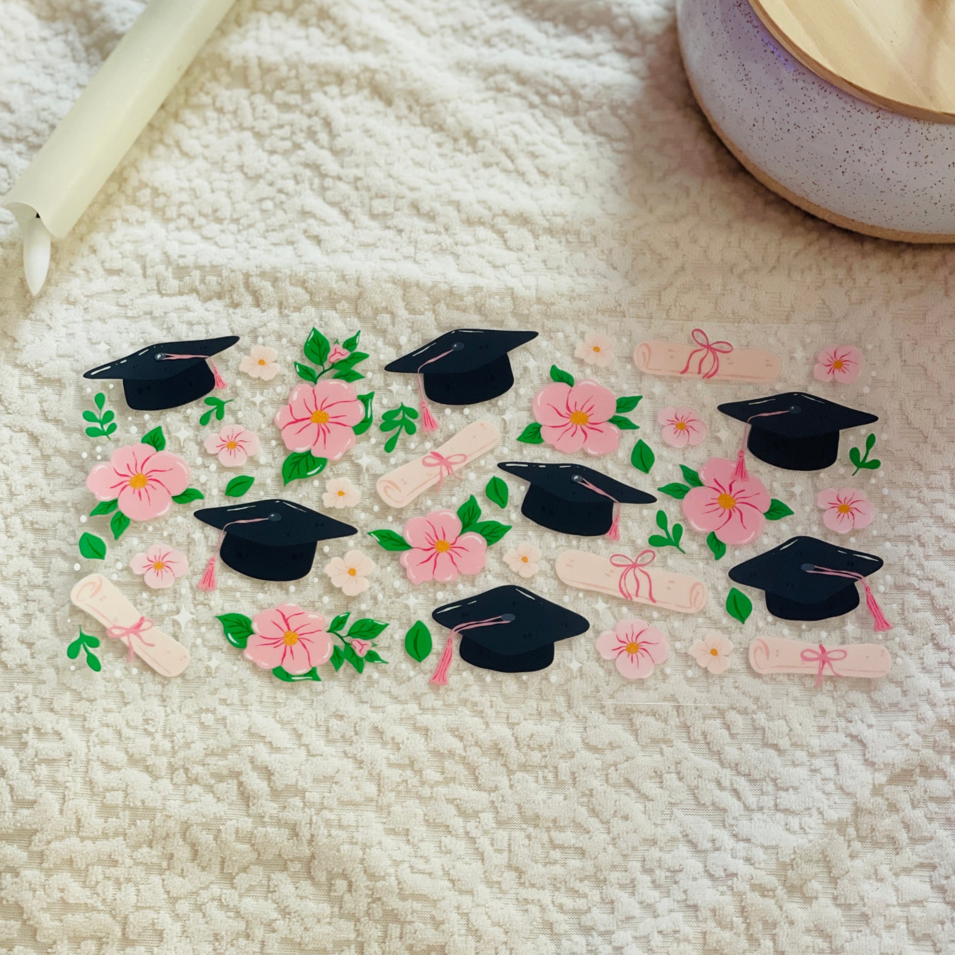 2. Place the transfer on the cup ensuring design is straight and positioned correctly.