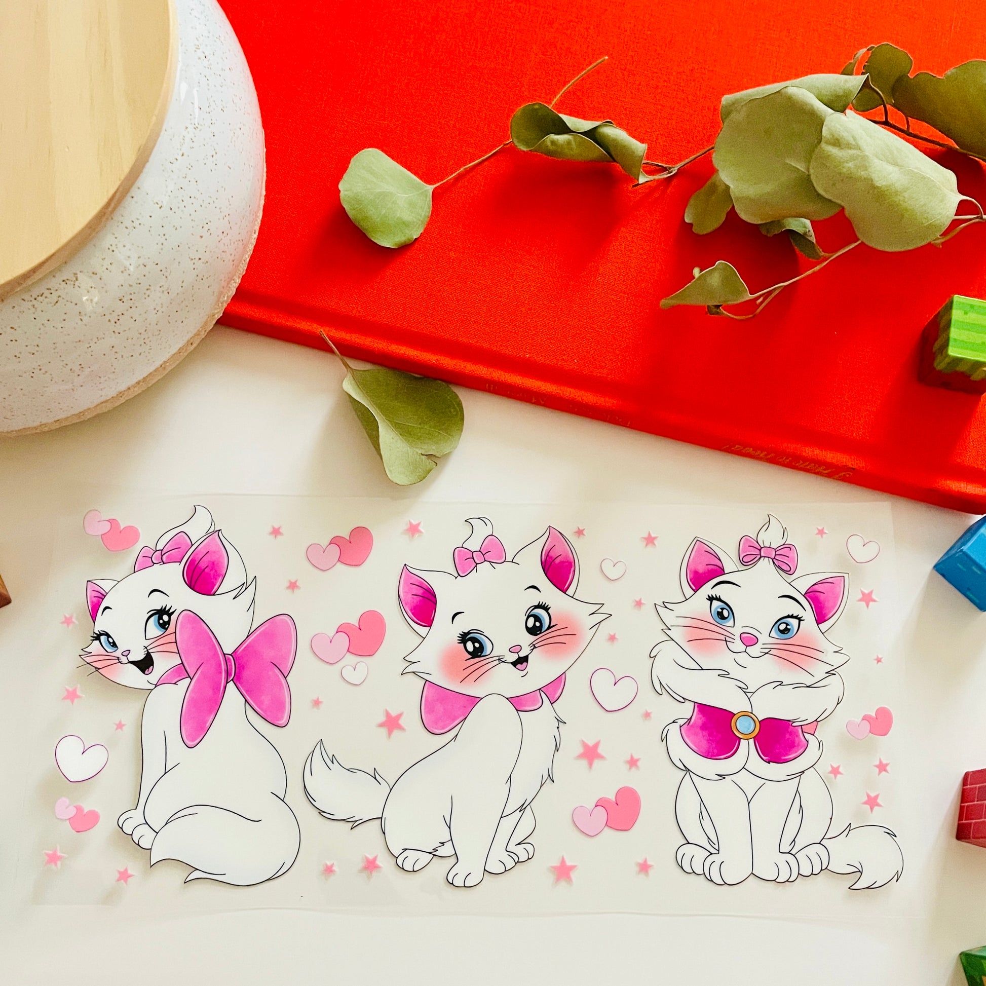 2. Place the transfer on the cup ensuring design is straight and positioned correctly.