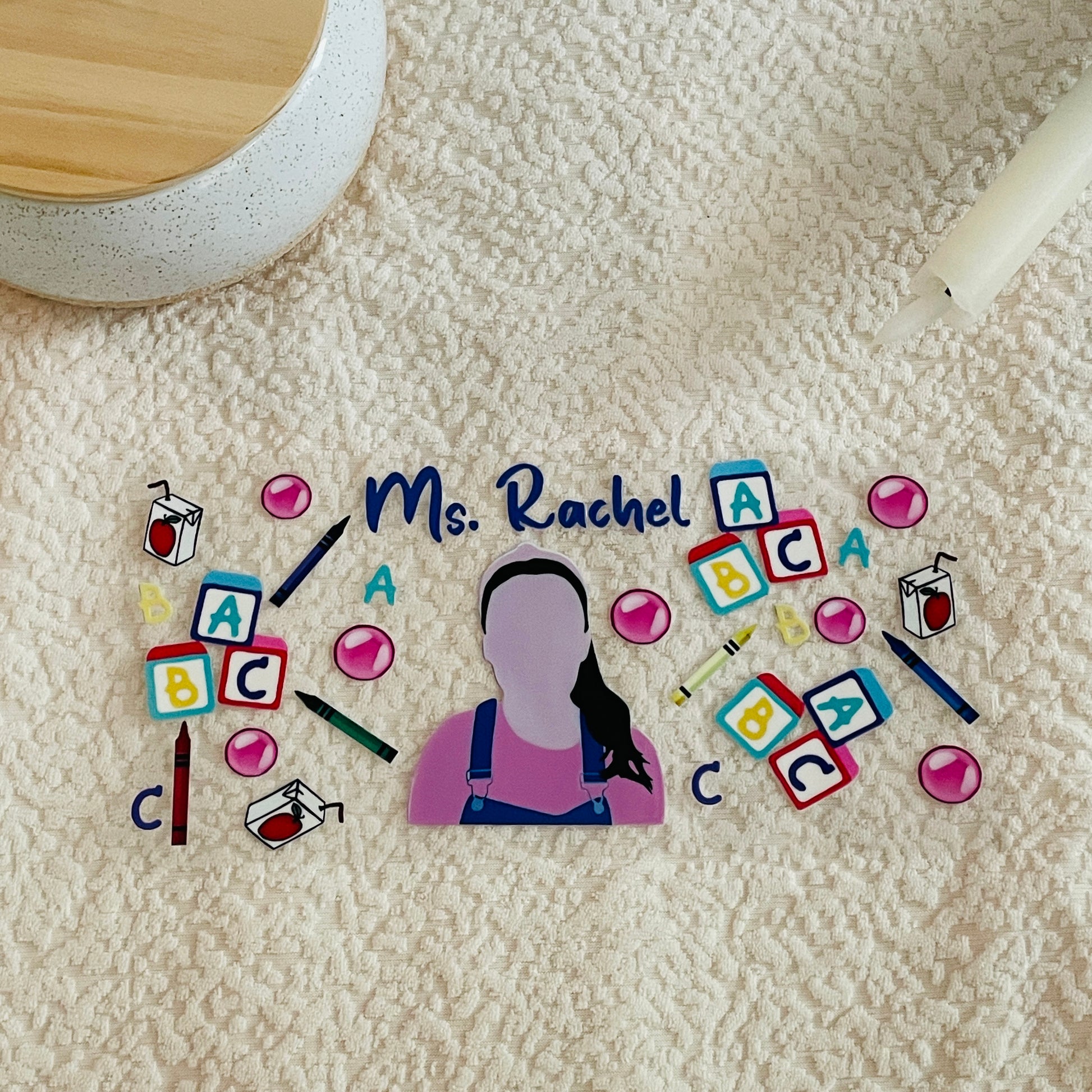 2. Place the transfer on the cup ensuring design is straight and positioned correctly.